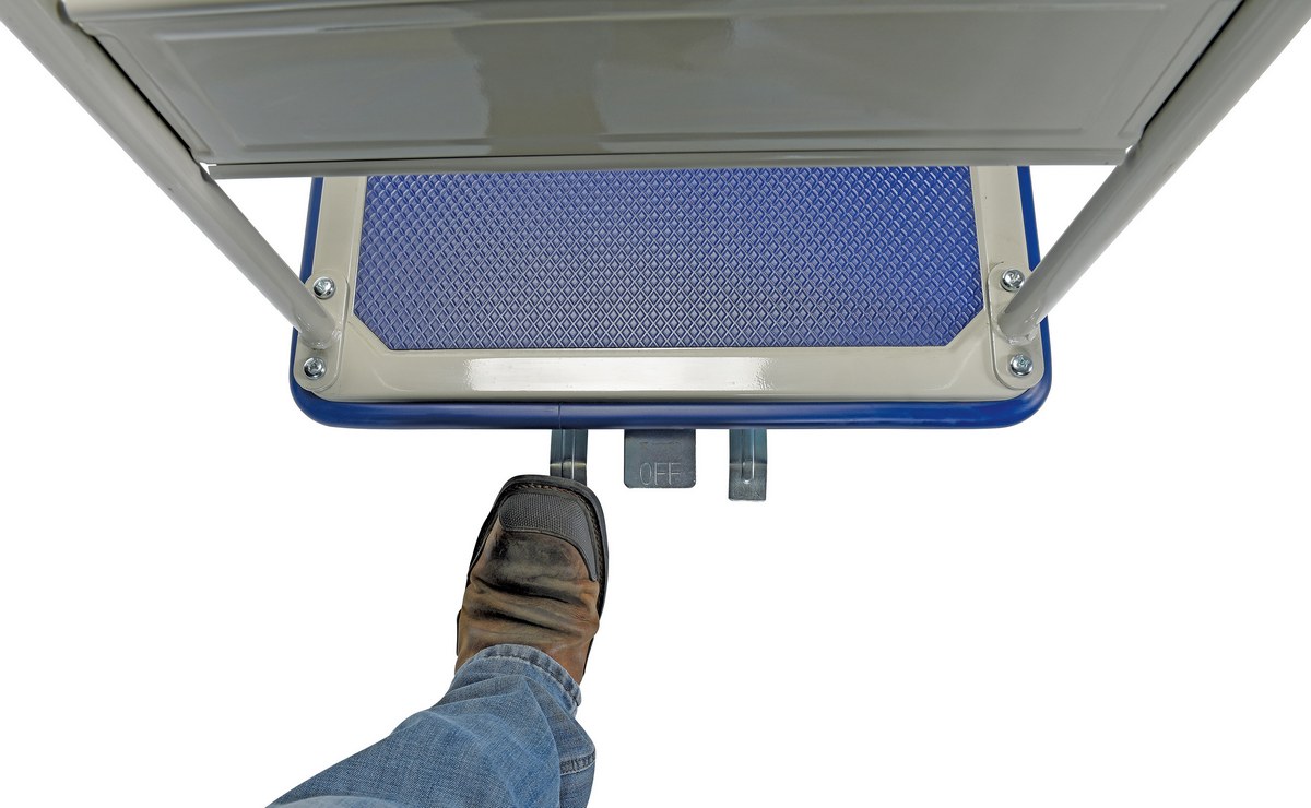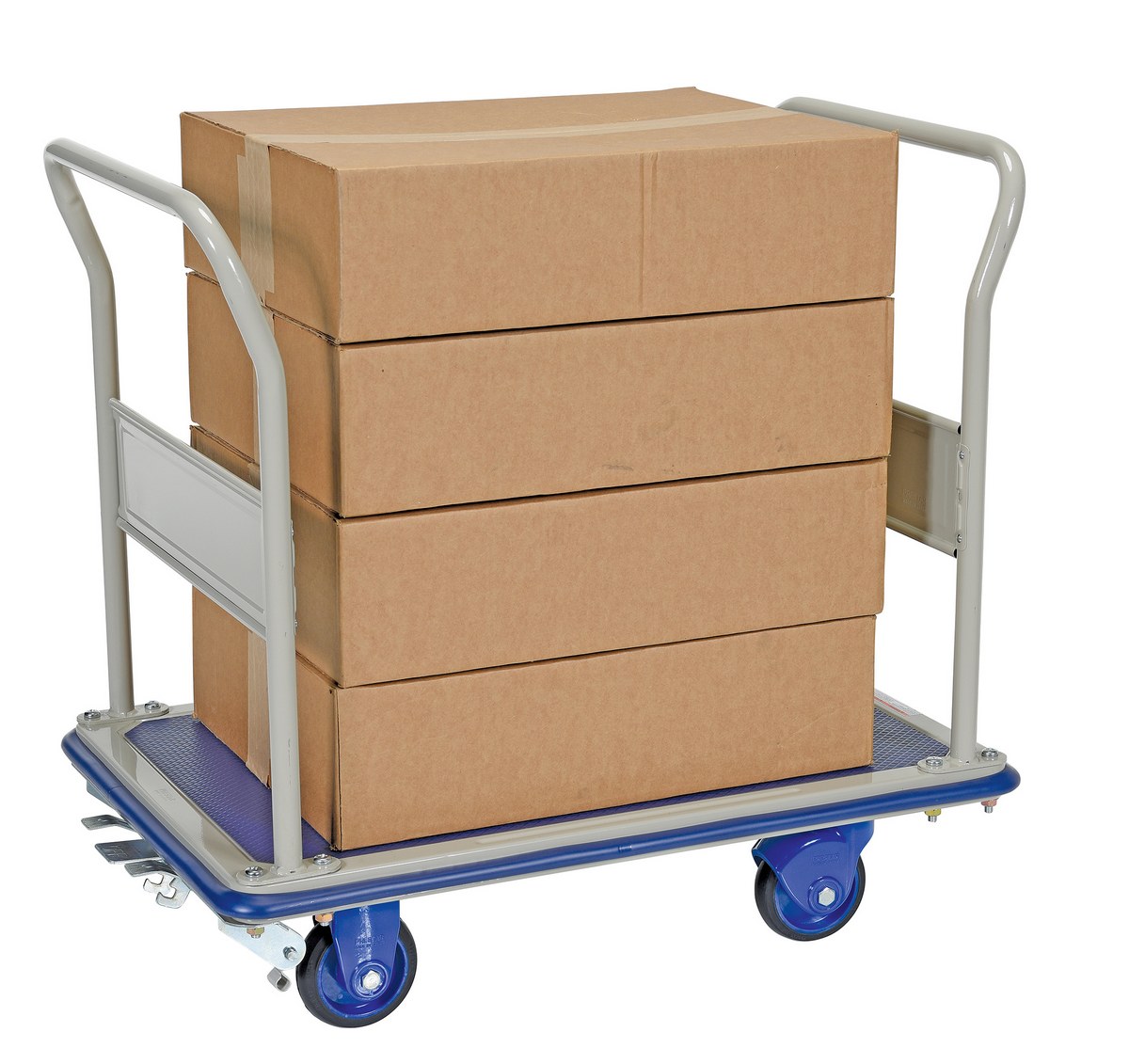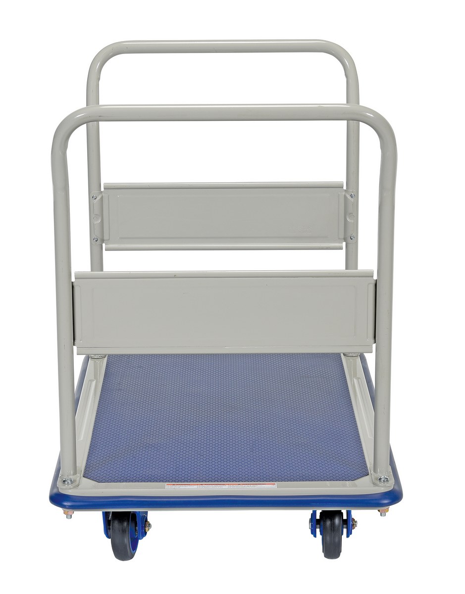 Steel Truck Dual Handles with Floor Brake 39-7/8 In. x 24-1/2 In. x 34-1/8 In. 660 Lb. Capacity BlueThe steel platform cart is a great addition to the shipping and distributing facilities. The steel platform creates a durable, yet lightweight construction that can be transferred simply from workstation to workstation. The unit rolls on casters for smooth transference over a variety of terrains. The double handled design creates a more ergonomic posture of personnel during use, while the brake keeps the unit steady when not in progress.