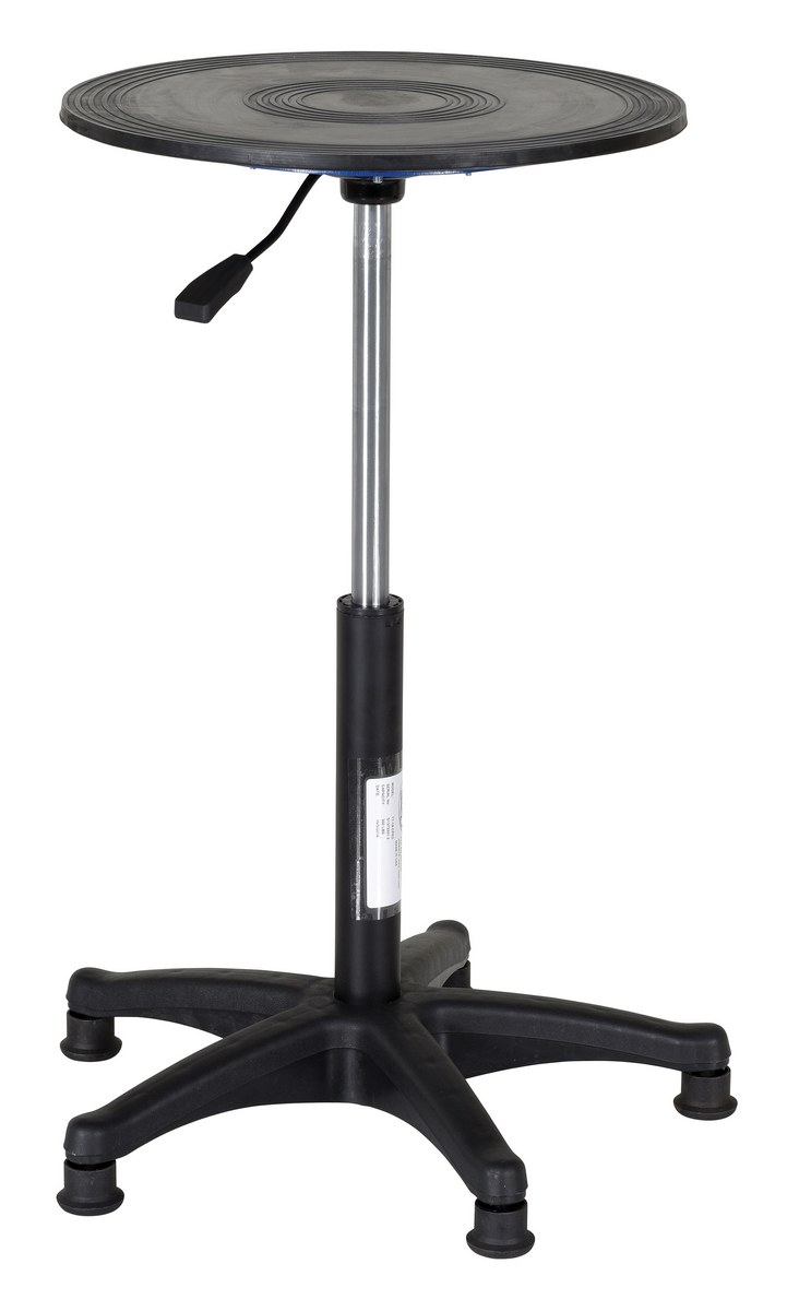 Steel Turntable 18 In. Diameter Gas Cylinder 21-31 In. Height Adjustment 300 Lb. Capacity BlackThe heavy-duty manual turntable maximizes workspace and allows workers to rotate an item from a single position. Bench top turntables allow workers to stay in one position and rotate items for access from all sides. No need to walk around the table to access areas out of view. Easy and smooth bearing motion. Used in hundreds of applications; displays, paint spraying, assembly units, repairs, etc. The rugged steel construction has an easy, smooth rotation that won't jostle delicate parts. This unit features a gas cylinder up and down mechanism (similar design as office chairs).