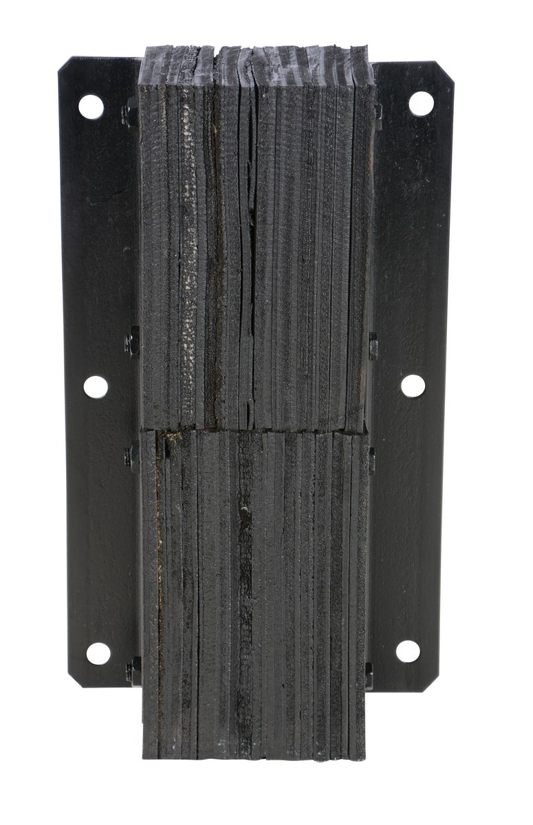 The laminated Dock Bumper provides durable, economical protection for loading docks and trailers. Unit is constructed of fabric reinforced rubber from recycled truck tires. The pads are laminated between painted structural angles and held together with steel tie rods. Installation is quick and easy by bolting or welding unit to the dock. Width is bolt hole center to bolt hole center. The installation hardware is available separately.