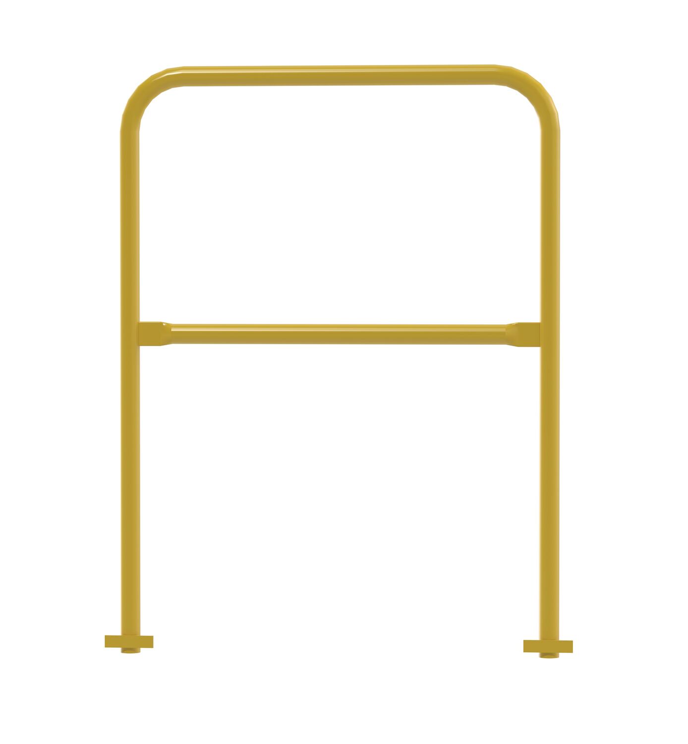 Steel Safety Railing Pour in Place 3 Ft. Length YellowElevated surfaces at any height can lead to a dangerous situation. Protect those areas, like walkways and mezzanine drop-off's with a steel handrail. This design is specifically engineered to be installed directly into the concrete, instead of attaching to the surface. 6” inches have been added to the leg length to accommodate for the direct ground installation. The VDKR series safety rail products comply with U.S. Occupational Safety and Health Administration (OSHA) General industry requirements for guardrail systems in 29 CFR 1910.29.