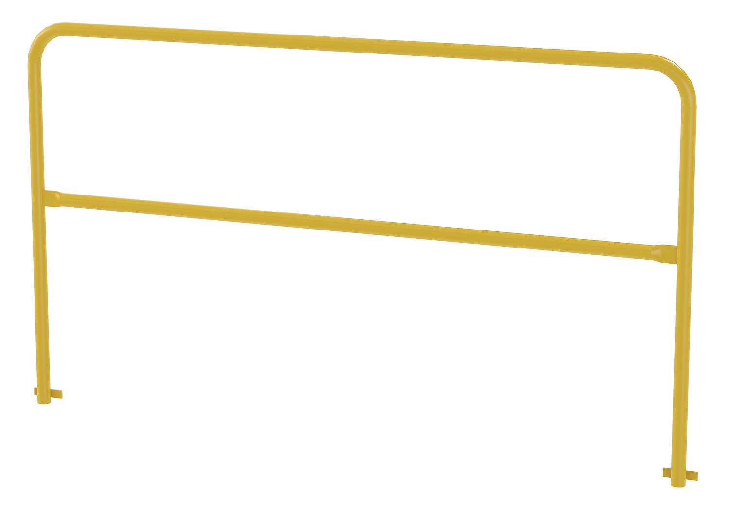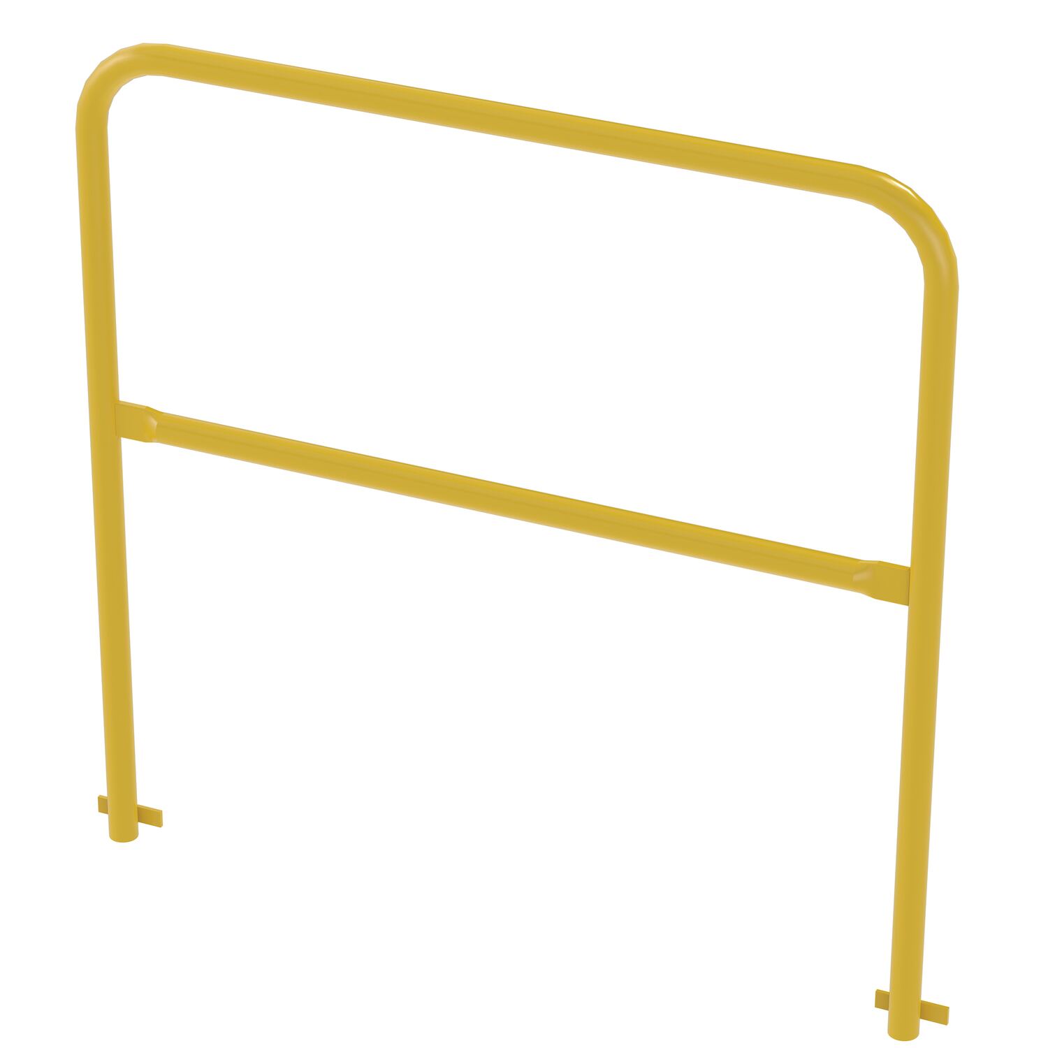 Steel Safety Railing Pour in Place 4 Ft. Length YellowElevated surfaces at any height can lead to a dangerous situation. Protect those areas, like walkways and mezzanine drop-off's with a steel handrail. This design is specifically engineered to be installed directly into the concrete, instead of attaching to the surface. 6” inches have been added to the leg length to accommodate for the direct ground installation. The VDKR series safety rail products comply with U.S. Occupational Safety and Health Administration (OSHA) General industry requirements for guardrail systems in 29 CFR 1910.29.