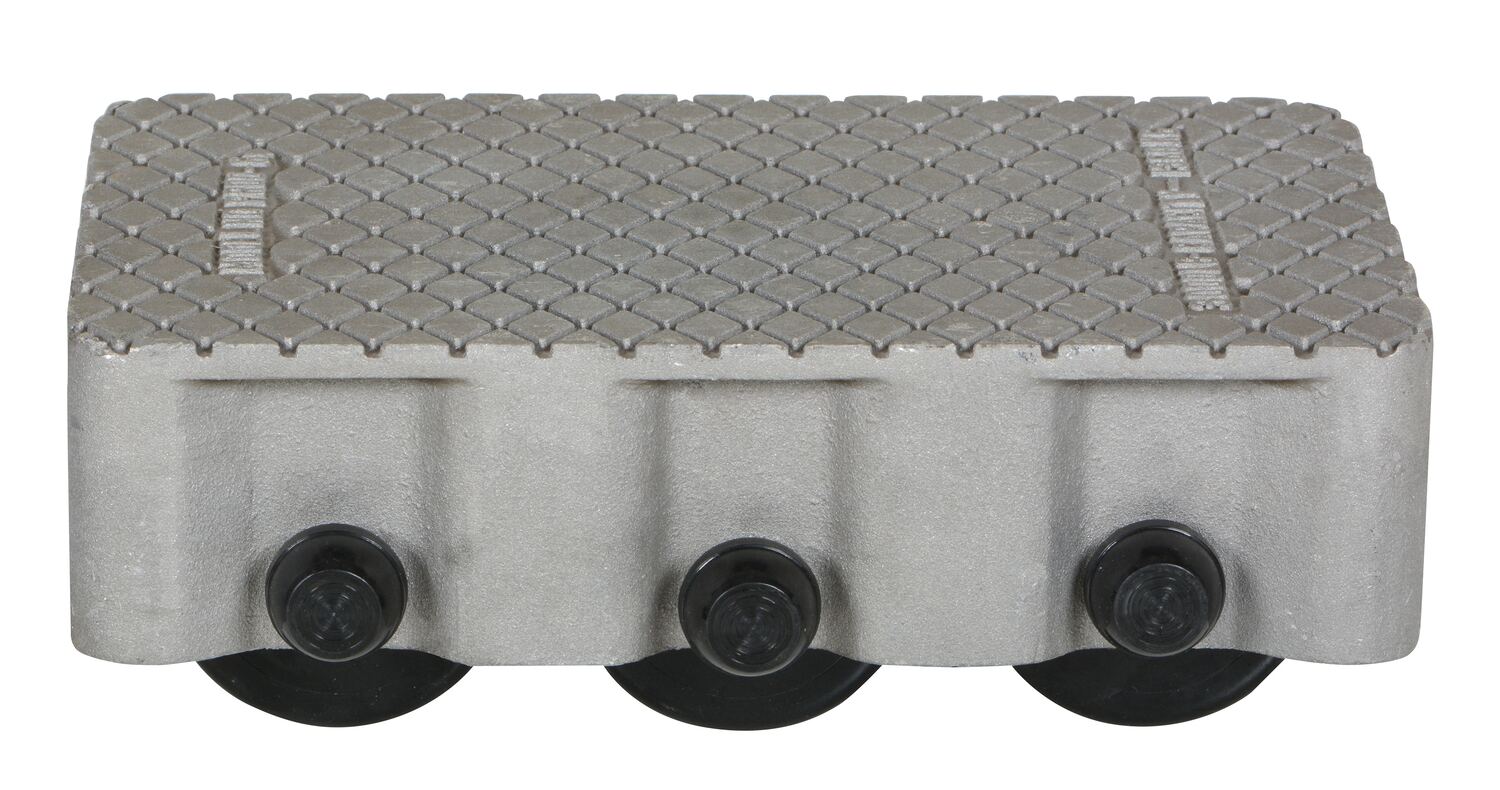 Cast Aluminum Dolly 12-1/2 In. x 8-1/2 In. 3,000 Lb. Capacity SilverThe cast Aluminum dolly is easy to use and provide efficient moving time. Box-like frames have integral sides and deeply fluted tops. Dolly is excellent for moving heavy crates and machinery. Note: except when used individually, corners should be turned by lifting the load and rotating each dolly individually.