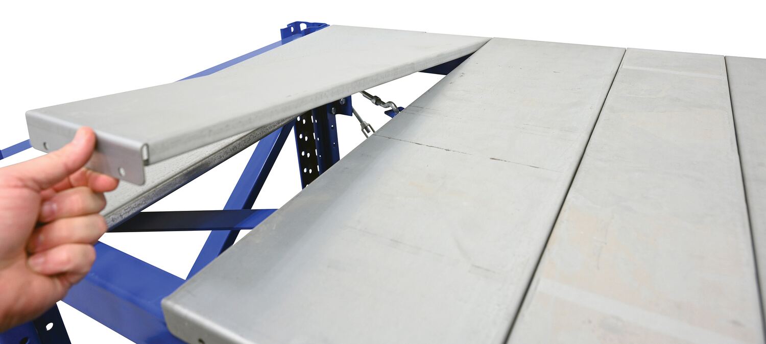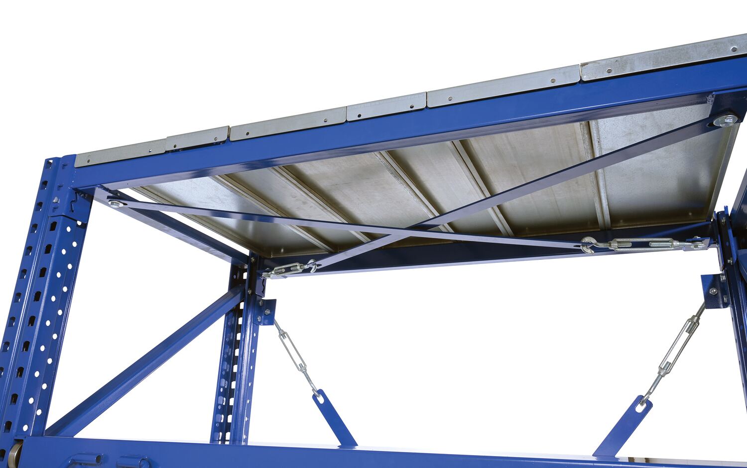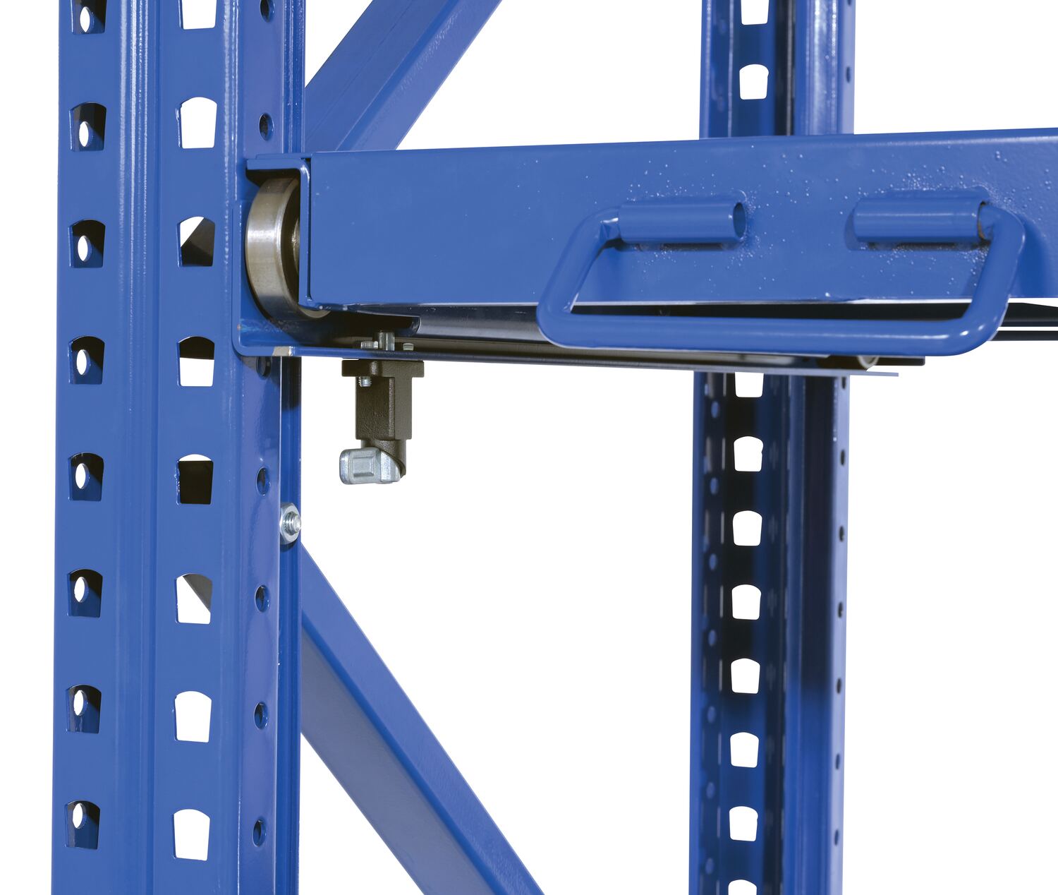 Steel Heavy Duty Roll-Out Shelving 32L X 60W X 80H 3,000 Lb. Capacity BlueHeavy Duty roll-out shelving supports and stores heavy dies, fixtures and machinery. Shelves should be rolled out one at a time for simple product placement, as well as, personnel safety. All steel construction with powder coat finish. Mounting holes are pre drilled. Assembly hardware is included. Mounting hardware is available separately.