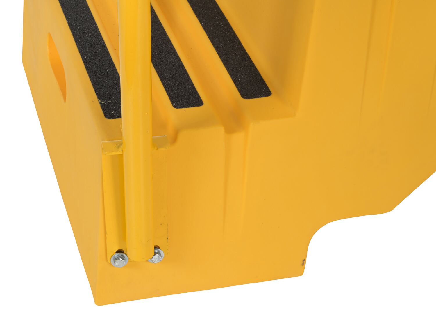 Polyethylene 4-Step Step Stool 500 Lb. Capacity YellowWhen items are out of reach, do not strain, simply step up with this Polyethylene step stool. The four (4) step unit has rear opening access storage compartments. This stool has rubber feet and a non-skid tape surface. Hand holes are standard for easy one person transportation.