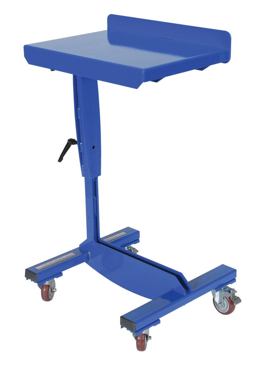 Steel Mobile Tilting Work Table 16 In. x 24 In. 200 Lb. Capacity BlueThe mobile tilting work table is designed to bring work to an ergonomically correct position. A raised edge provides stability when completing forms or compiling inventory data. Open design that is accessible form all sides.