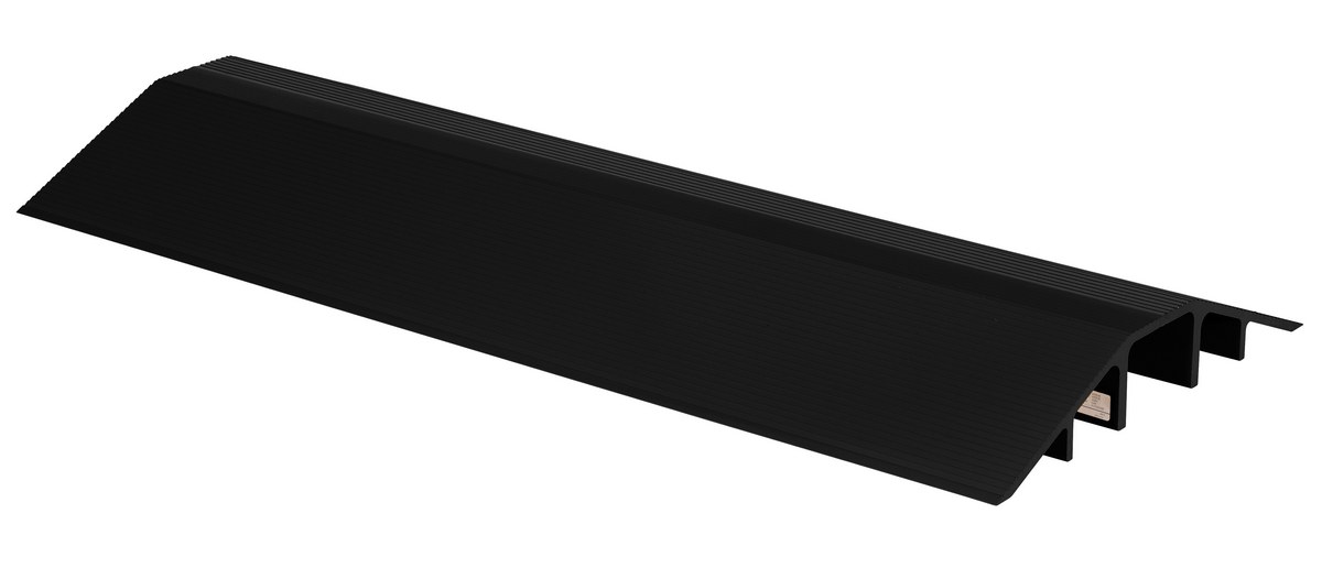 Aluminum Extruded Hose/Cable Crossover 48 In. Length BlackThe Extruded Aluminum hose and cable Crossover is perfect for a multitude of industries, from office area to warehouses. A crossover is designed to protect air lines, electrical cords and computer cables from damage by fork trucks, carts, and personnel. This crossover is lightweight for easy portability.